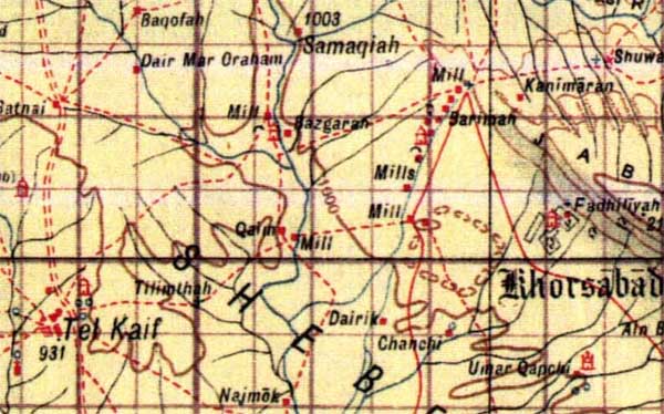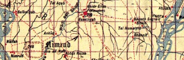 6 miles north-east of Mosul. Situated on the east side of the river Tigris.