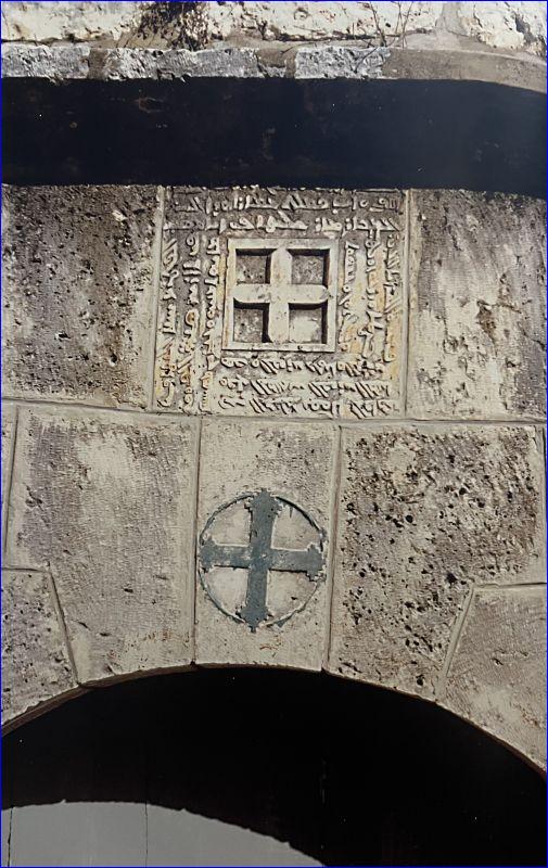 The main epigraph, carved around a cross at the church entrance, dates from 1628. It is the first Maronite inscription to appear after three centuries of silence since the epigraph of Our Lady of Ilige (1276--77).