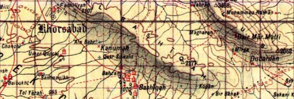 miles north-east of Mosul. Built on the Maqlub Mountain.