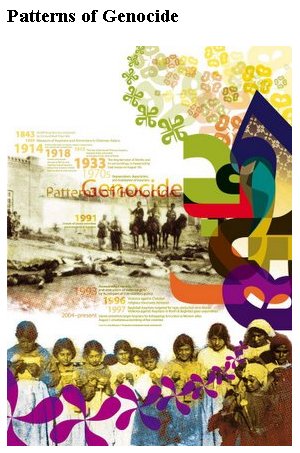 Several unique observations have arisen, both visually and conceptually, through this investigation. The relationship of patterns and ornamentation is juxtaposed with abstract form and documentary content. Formation of a cluster of letterforms transform into a variegated visual repetition of patterns, utilizing historic and contemporary photos and text to document a specific aspect of 20th Century Assyrian history.