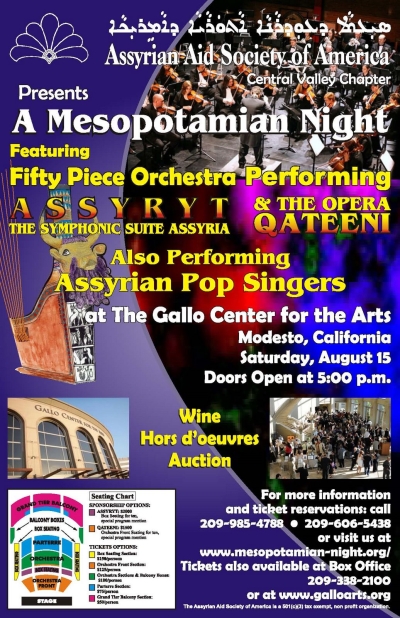 The Assyrian Aid Society of America (AAS) Central Valley Chapter will present the third annual Mesopotamian Night concert on Saturday, August 15 in the Rogers Theater at the Gallo Center for the Arts in Modesto, California.
