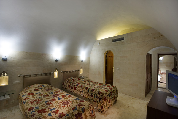 The hotel consists of two historical buildings and contains 30 rooms built and decorated in different architecture and features: 2 single rooms, 23 standard double rooms (with double or twin beds), 3 triple rooms and 2 suits. All rooms have energy-card system, plasma TV, air-condition, telephone, mini bar, safe box, internet connection and hair dryer.