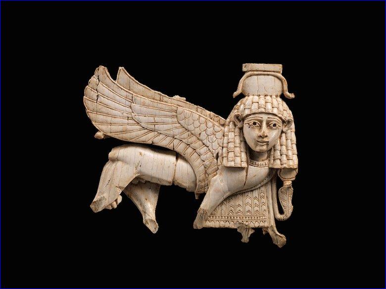 Weapons-grade iron was thus in high demand by western Asian states where deposits were scarce, Assyria in particular, and the Phoenicians, expert sailors based on the Levantine coast, were ideally positioned to meet this demand. Phoenician traders established trading posts all across the ancient world, including the North African coast, the islands of the Mediterranean, and both southern and western coasts of the Iberian peninsula. They left their mark on many cultures: their round-bottomed merchant vessels controlled the route to Tartessos, on the mineral-rich Atlantic coast of Spain. Homer's Odyssey depicts the Phoenicians as dangerous and deceptive visitors who trouble the Aegean with raids and kidnappings. But the Greeks also thought their own city of Thebes had been founded by a Phoenician, Cadmus, a civilizing hero who brought "Cadmean letters," or alphabetic writing, to the region. Phoenician artworks are well represented at the Met exhibition, including many carved out of ivory--delicate hair combs, narrative reliefs, and wonderfully expressive nude female figures, breasts cupped in their two hands, probably votive images representing the fertility goddess Astarte. But perhaps the most striking Phoenician object is an inscribed sandstone stele found at Nora on Sardinia. Dated to around 800 BC, it bears witness to the Phoenician export of "Cadmean letters" to Europe, where they gave rise to the Greek and Roman writing systems and thus to most of those used today.