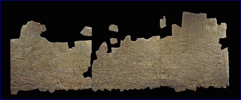 Political instability in the Near East was the driving force behind much of this interconnectedness. Around 1200 BC, the Hittite and Babylonian empires, the superpowers who dominated the Tigris and Euphrates valleys at the heart of the ancient Near East, collapsed, for reasons not well understood (the Mycenaean Greek cities of the Homeric epics were destroyed at about the same time). In the centuries that followed, an aggressive Assyrian state rose to prominence and then fell in its turn, ceding supremacy around 600 BC to the Babylonians (in what is now western Iraq), newly energized under the warrior-kings Nabopolassar and Nebuchadnezzar. Meanwhile, around the periphery of the Mesopotamian region, numerous small kingdoms--Urartu, Phrygia, Aramaea, and a group collectively called the Syro-Hittite kingdoms--jostled against one another, and against the major powers, in a ceaseless rivalry for stature and territory. A huge and remarkably detailed stone relief in the Met exhibition, carved by Assyrian hands in the mid-seventh century BC, reveals the violence of one such struggle: Assyrian troops are seen routing soldiers of Elam at the battle of Til Tuba (in what is now southern Iran), and beheading their captives, including the Elamite king Teumann, recognizable in several scenes by his receding hairline.