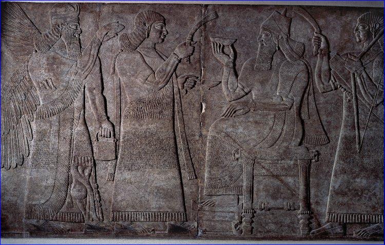 The best-known source for a Neo-Assyrian royal feast is the so-called Banquet Stele. This peculiar document was set up to commemorate the inauguration of the North-West Palace at Kalhu (modern Nimrud), built on the instructions of the king Aššurnasirpal II (883-859 BCE). Mesopotamian royal residences were the physical arena for great public displays -- but at the same time, they were the settings for more private meetings, family reunions, and assemblies of the king with his most intimate friends. These occasions often saw their protagonists sitting at a dining table. Aššurnasirpal II, who decided to re-establish Kalhu as the centre of his empire and thus began a massive project of renovation in the city, left many accounts of his military deeds and building projects, but the inscription reporting the inauguration festivities of his capital city has no duplicates.