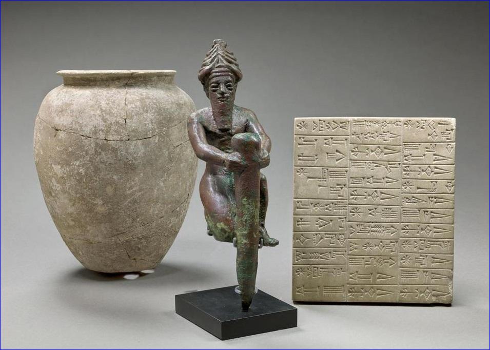 We are standing at the threshold of History Begins in Mesopotamia, a new exhibition of almost 500 objects at the Louvre's outpost in the northern French town of Lens. Spanning 3,000 years of Mesopotamian history (an area that roughly corresponds with modern-day Iraq), it begins with the invention of writing, in the late 4th millennium BC, and ends in 331BC, with Alexander the Great's conquest of Babylon.