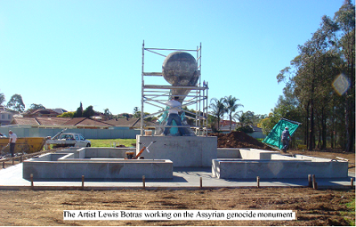 When asked if the entire construction work for the statue is actually completed, Mr. Shahen answered that the construction work has already completed in accordance with the time schedule, he added that the Assyrian artist, Lewis Batros, is working on the finishing touches of the statue. Whether or not the final look of the memorial will remain like that of the artist's imagination at the beginning Mr. Shahen replied, the statue will be the same, but there are changes that have been previously agreed upon with Fairfield City Council, which I am certain will impress the observers.