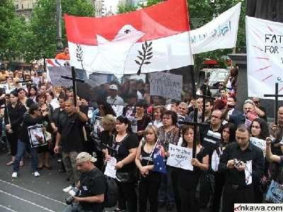Melbourne (AINA) -- In a show of mourning and solidarity more than 1300 members of Australia's Assyrian Chaldean Syriac community rallied this week in the Victorian state capital, Melbourne, aiming to bring attention to the ongoing persecution of Iraq's Christian community.