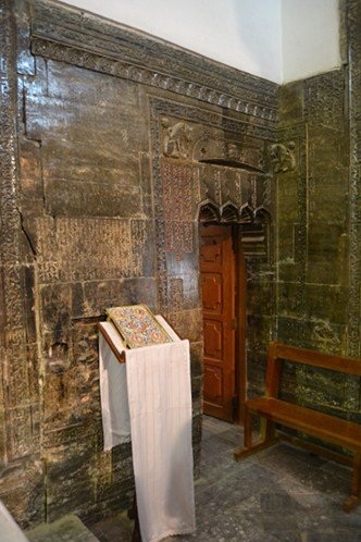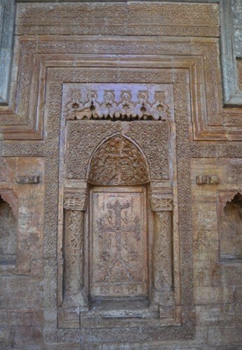This monastery is much better preserved. Its stone interior is intricately carved in the style of the Atabek Emirate, which lasted from the 11th to the 13th centuries before being wiped out by the Mongols. The style is a strange one: a sort of mix of Turkish design with Christian symbolism and elements from ancient Assyrian art. See the gallery for some images, and there are more at this site. St. Behnam monastery survived the Mongol invasion and even managed to make a few converts. Some of the inscriptions in the crypt are in Mongolian.