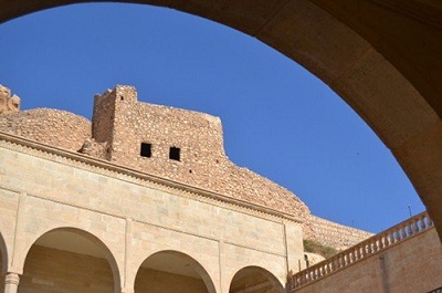 Above is a photo of the entrance to Mar Mattai monastery, run by the Syrian Orthodox Church. Located in Kurdistan in the far north of the country, it sits on the slopes of Mt. Maqloub. It was founded in 363 A.D. by the Saint Mar Mattai and is thus one of the oldest monasteries in existence.