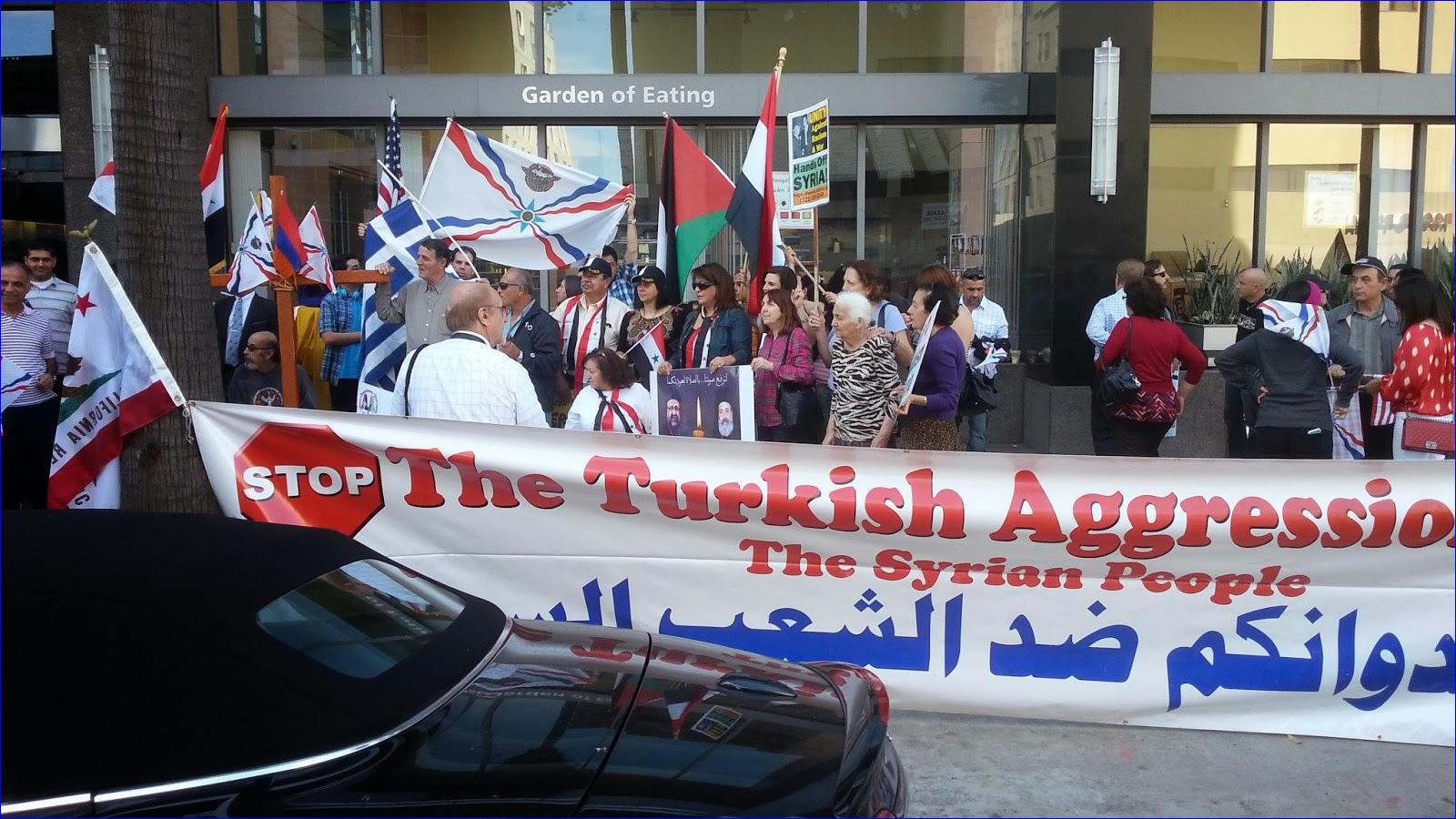 As news broke of the 13 Maaloula Nun's release from terrorist captivity, a dedicated group of Americans descended upon the Turkish Consulate in Los Angeles, to protest Turkey's support of Terrorism and Genocide in Syria. A Coalition of Christians and Muslims, made up of Assyrians, Armenians, Greeks, and Syrians gathered to voice their frustrations. Their message was clear, stop supporting Islamic Extremists and their ongoing Genocide of Syria's minorities.