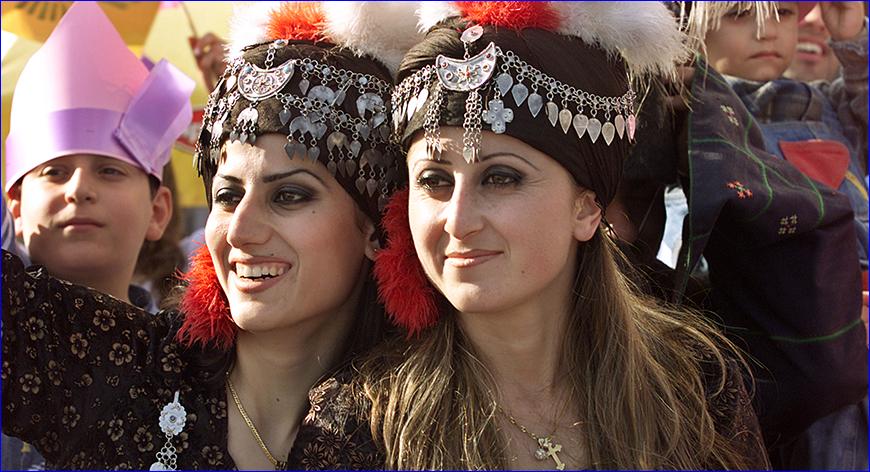 Syrian and Iraqi Assyrian Christians women celebrate their new year in Damascus with folk dances and songs, April 1, 2004 (photo by REUTERS/Khaled al-Hariri).Ninety-nine years were not enough for the Assyrians to forget the pain inflicted by the bloody massacre known as the Sayfo massacre. Meanwhile, the heated situation in the Levant is burdening Christians in general, and the Assyrian Church in particular, amid growing talk about the danger of yet another wave of displacement. Assyrians are originally Aramaic, and the Assyrian language (Syriac) -- which is a dialect of Aramaic -- is the language used in the Christian churches in the Levant. The Assyrians converted to Christianity when the Apostle Peter adopted Antioch as residence for the patriarchate seat and spread the precepts of Christianity in the region. He then appointed Bishops Evodius and Ignatius, who established the united church in the city. Dozens of patriarchs followed, ending with Patriarch Moran Mor Ignatius Aphrem II Karim, who was elected as successor to late Ignatius Zakka I Iwas.