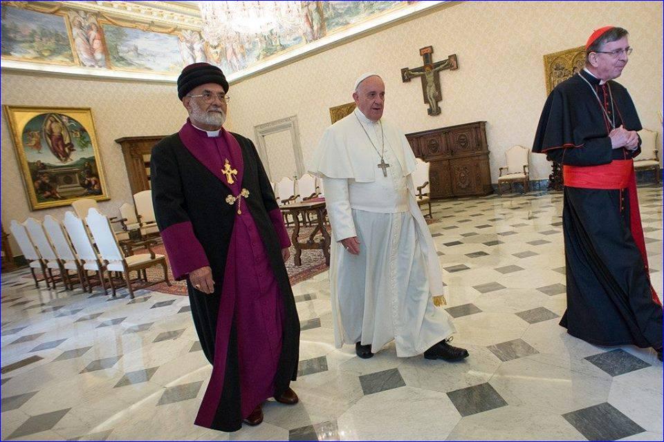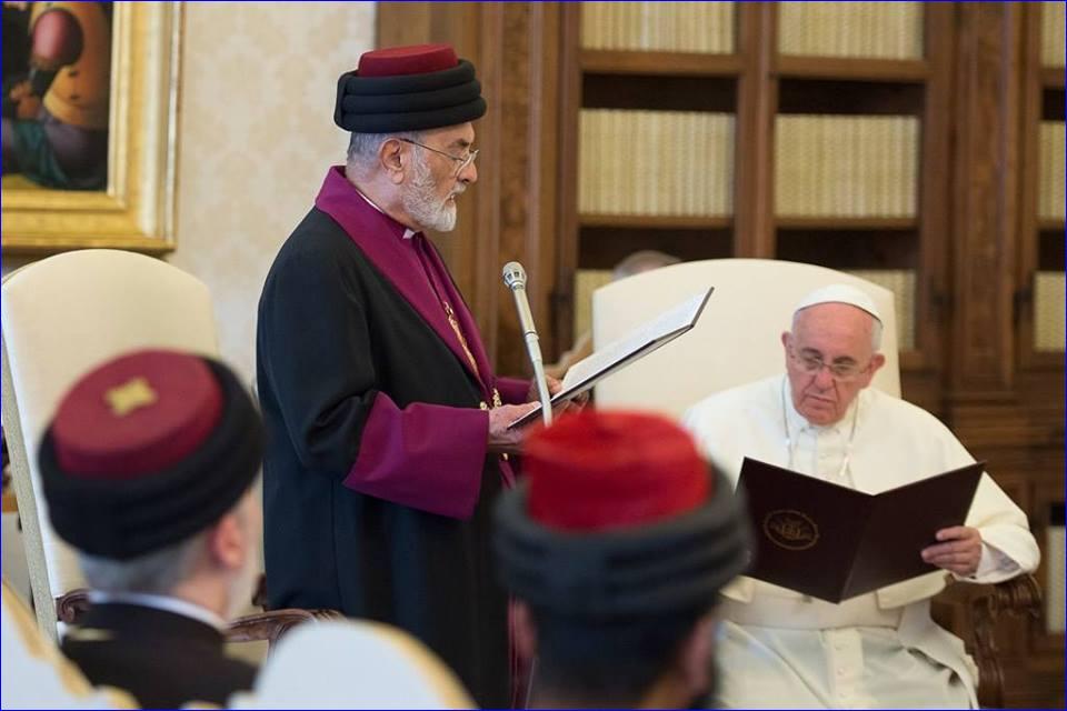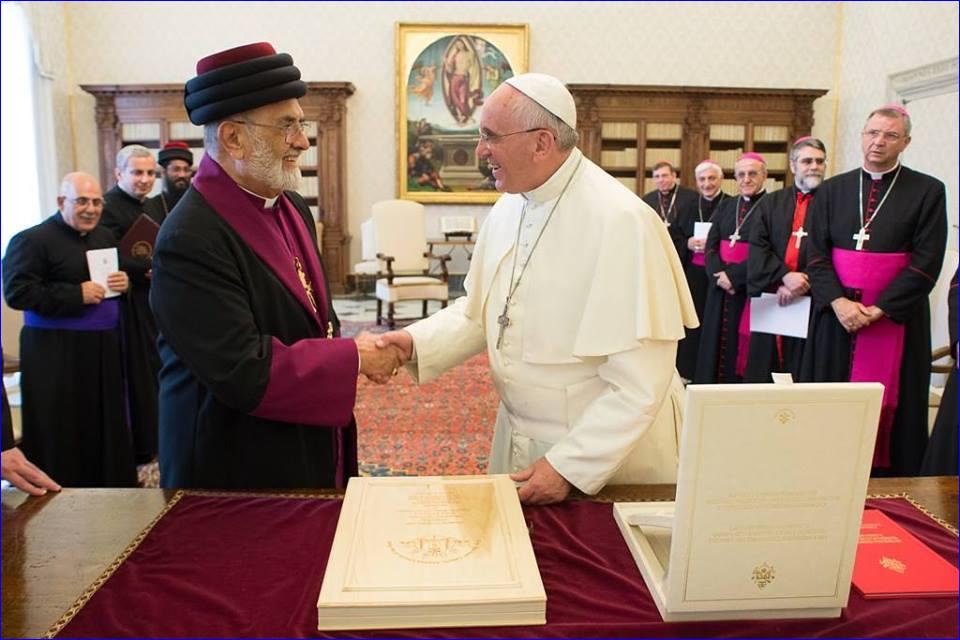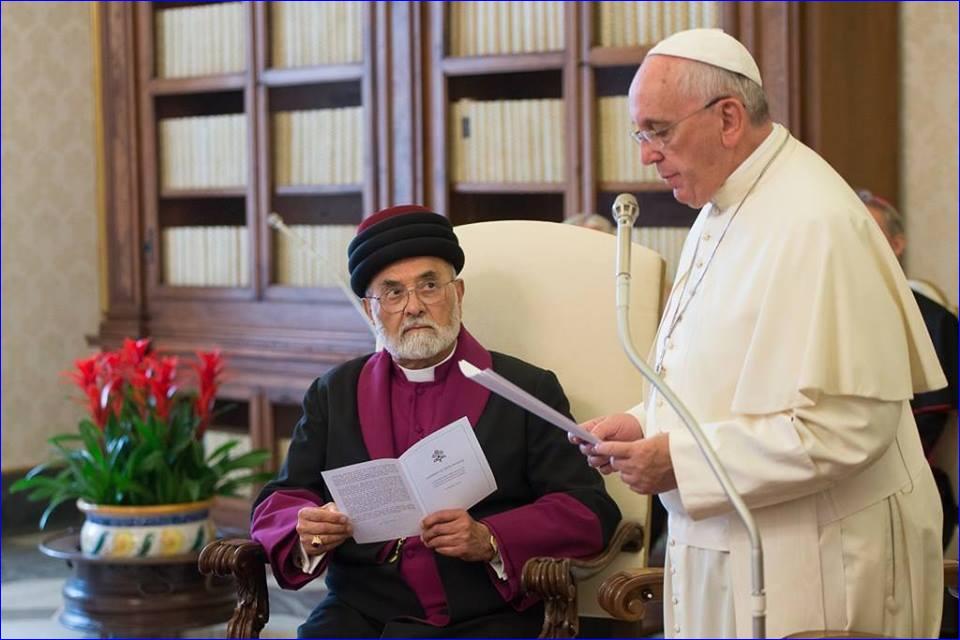 Pope Francis was speaking in a Vatican audience to Catholicos Patriarch of the Assyrian Church of the East, Mar Dinkha IV. The Patriarch is head of one of the oldest Christian churches -- tracing its roots back to the first century in Iraq, Iran, Syria and Turkey. Though theological discussions are on-going, the Assyrian Church of the East is not in communion with Rome.