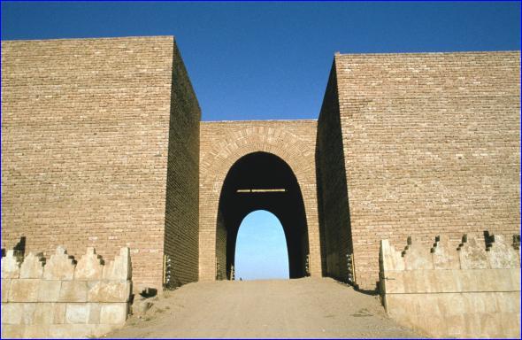The Mashki Gate, known as the "Gate of the Watering Places," may have been used to lead livestock to the nearby Tigris River. The Nergal Gate takes its name from the Mesopotamian god of death and the underworld.