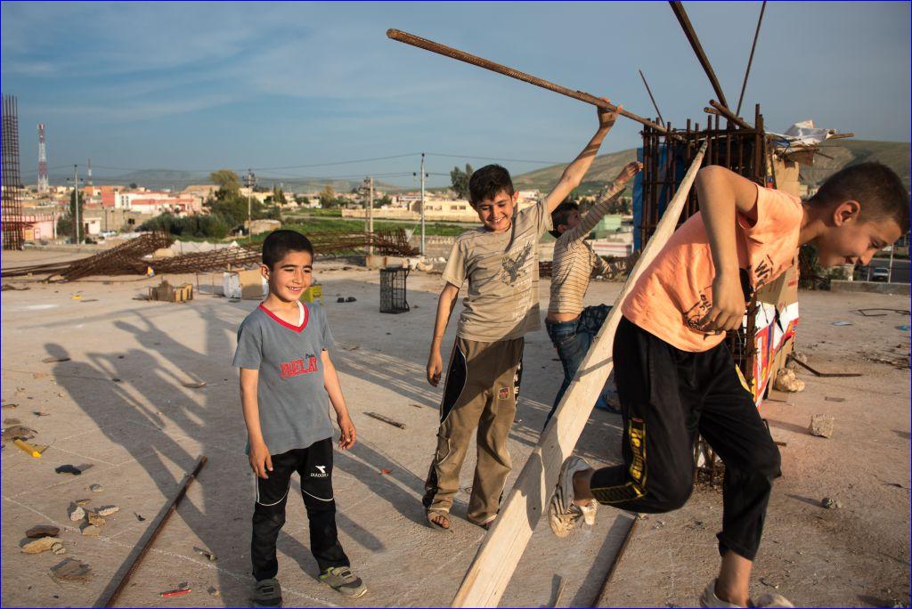 In Sharya, Iraq, where a refugee camp of 17,000 is filled to capacity, displaced Yazidi families can be found living throughout the ruined town, occupying everything from handmade structures to a large school building that was never completed. At least 500 people now live in the school, whose owner is rumored to have fled to Europe.