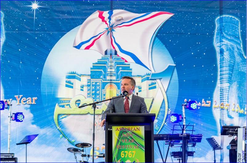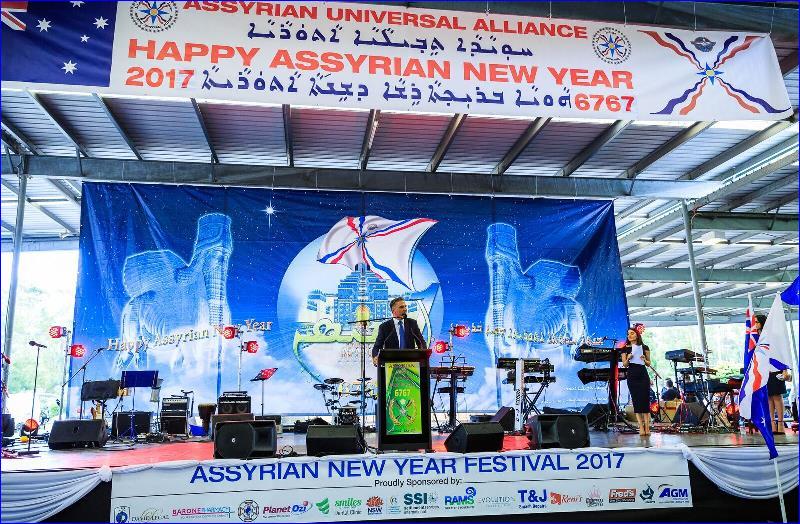Mr. David M. David, President of the Assyrian Australia National Federation welcomed the attendees. Speaking in the Assyrian language he stressed the importance of this national day for all Assyrians. Other guest speakers were; Senator the Hon. Concetta Fierravanti-Wells, Minister for International Development and the Pacific, representing the Prime Minister of Australia; The Hon Malcolm Turnbull MP; Mr Chris Hayes MP; The Hon. Luke Foley MLC, NSW Opposition Leader; The Hon. Chris Bowen MP, Shadow Treasurer, representing the Hon Bill Shorten MP, Leader of the opposition. The Hon Tanya Davies, MP; Mr. Guy Zangari MP; Dr Hugh McDermott MP; Mr Frank Carbone, Mayor of Fairfield City Council; Reverend The Hon. Fred Nile MLC , President of the Christian Democratic Party.