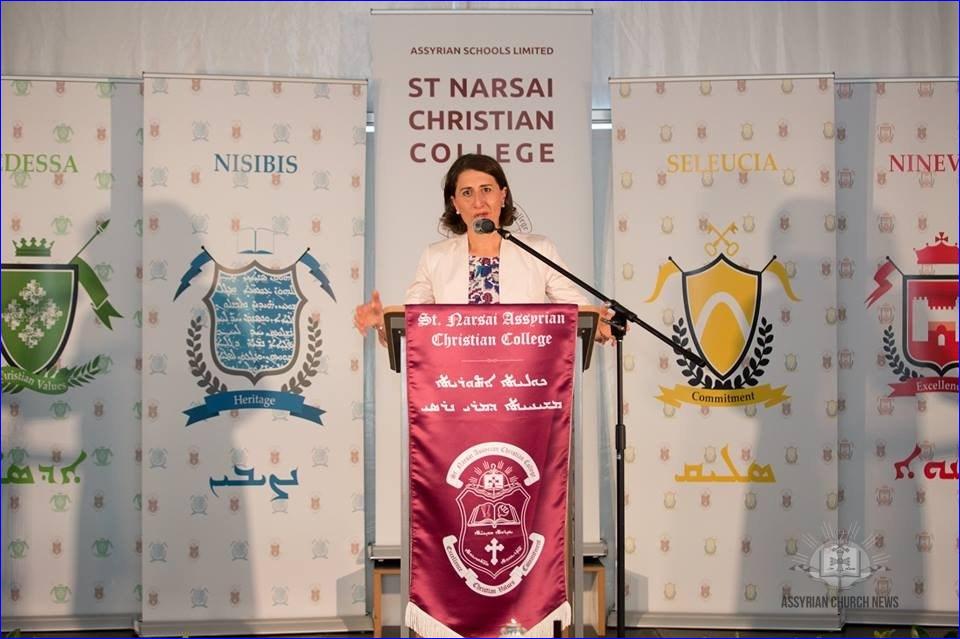 In her remarks to the 700-strong crowd, Premier Gladys Berejiklian reflected on the thousands-year-old history of the Assyrian people noting that St Narsai's marks the "continuation of the history, culture and legacy that has graced the world for thousands of years". She went on note her pride in the Assyrian-Australian community having "a school of this magnitude and calibre in the heart of New South Wales".